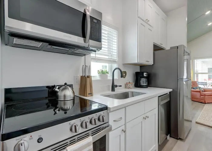 A fully furnished kitchen with an oven and a dishwasher is included in this Savannah accommodation. The property is located just around the corner from Tubby's Tank House in THUNDERBOLT, where guests can enjoy American dishes.